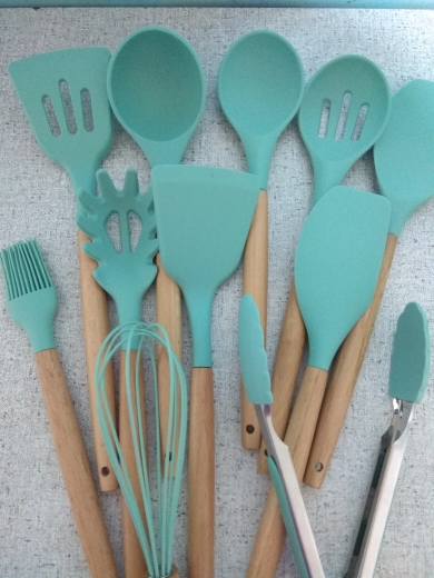Silica gel kitchenware has low noise, no damage to the pot and easy to clean. The appearance is also very beautiful. I love it so much.